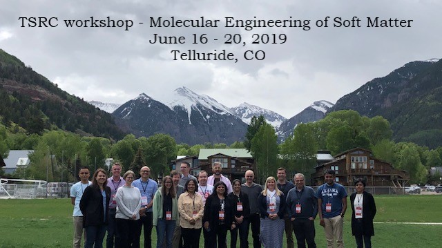 Telluride Science Research Center (TSRC) Workshop titled “Molecular engineering of soft matter: Spanning small molecules to macromolecules” was held for the first time from 20 June 2017 to 24 June 2017 at the TSRC facilities in Telluride, Colorado. More information is available here. The second workshop will be held in 2019. For more information, click here.