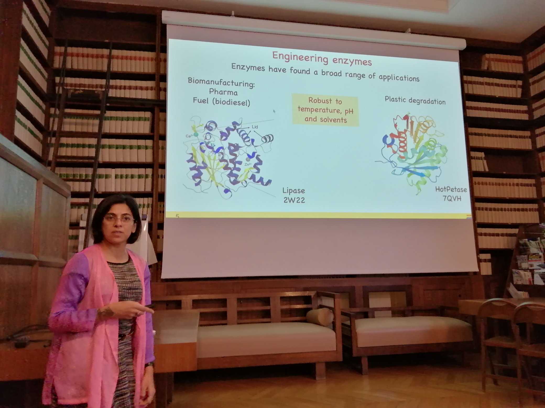 Dr. Sarupria attended a Centre Européen de Calcul Atomique et Moléculaire (CECAM) event in Paris, where she presented on in silico engineering of enzymes and peptides. There, she discussed insights gained through molecular dynamics simulations combined with network analysis on lipases and our recent work on developing ML-enhanced methods to study peptides on interfaces.