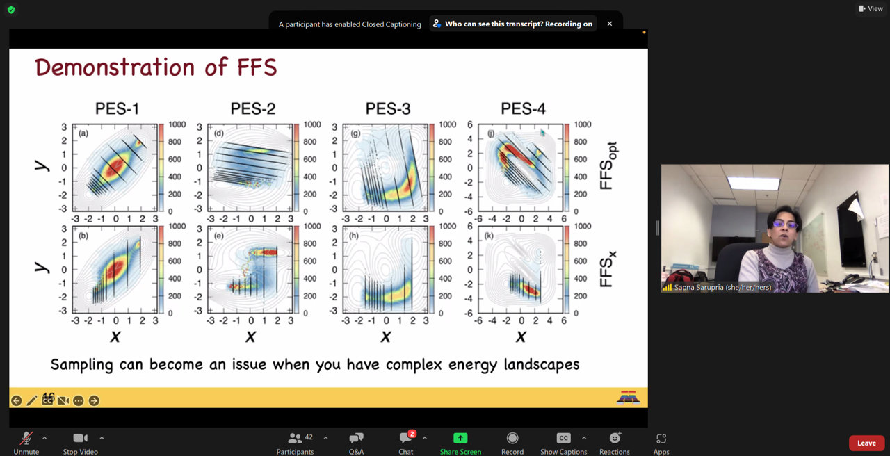 Dr. Sarupria discussed ice nucleation on kaolinite and silver iodide surfaces in her talk at the Ice CECAM . She also gave a sneak preview of forward flux sampling in multiple dimensions!